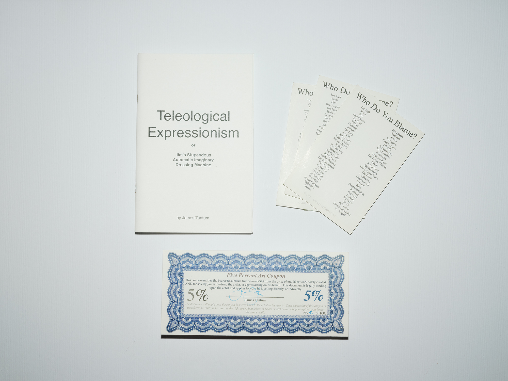 (1) copy of Teleological Expressionism (automatic imaginary dressing machine), detailing a clothing experiment the artist conducted in the 1990s; one of the few remaining from the 3rd printing!